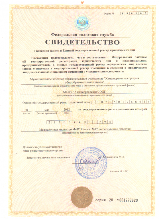 | Полное наименование образовательной организации* | Муниципальное казенное общеобразовательное учреждение «Хамавюртовская средняя общеобразовательная школа имени Аджиева Алибека Муцалхановича» |