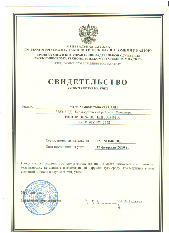 | Адрес местонахождения образовательной организации* | 368016 РД Хасавюртовский район с.Хамавюрт ул.им.Аджиева А.М.34 |